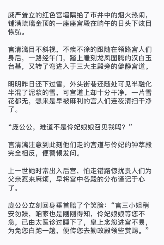 言清漓在心中过了一遭庞公公的话,对他这滴水不漏的应答心中有了数。